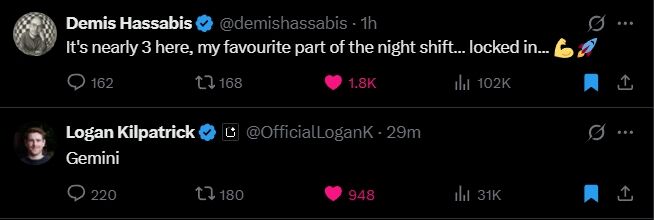 Google DeepMind 執行長哈薩比斯(Demis Hassabis)今日稍早在 X 上發文表示:「現在快凌晨三點了,我最喜歡的夜班時段……整個人都已經進入狀況。」簡短一句話,再度引發外界對 Google 是否正悄悄準備推出 Gemini 3 的高度關注。哈薩比斯過去多次在重大產品更新前以深夜貼文「預告」研發進展,因此這次動態格外受到留意。