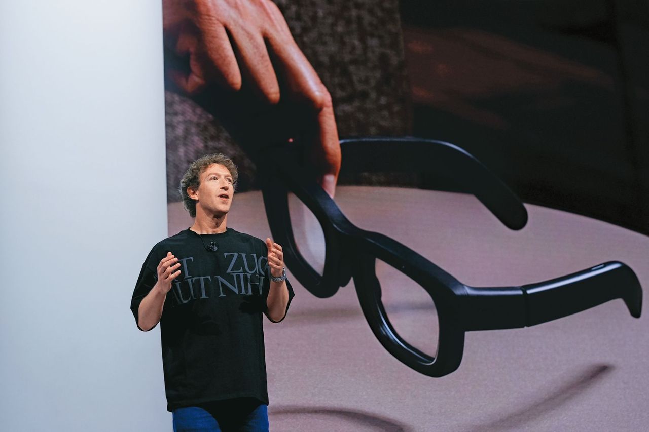 2024年9月,Meta(臉書)執行長祖克柏(Mark Zuckerberg)神采奕奕地出席Meta年度開發者大會,這一天正是全球智慧眼鏡發展的轉捩點。「眼鏡是一個非常自然的運算平台,非常適合拍照、錄製影像,你不用掏出手機,就可以用眼鏡直播畫面,甚至影像通話、聽音樂等等。」祖克柏才剛講完,會場大螢幕上出現了一款時尚又科技感十足的眼鏡。