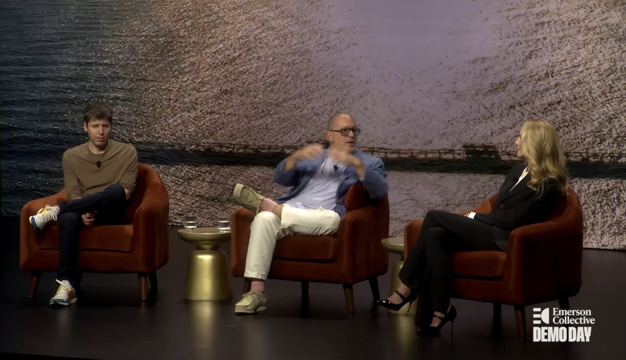 ▲奧特曼與艾夫首度鬆口AI裝置設計。(圖/YouTube@Emerson Collective)