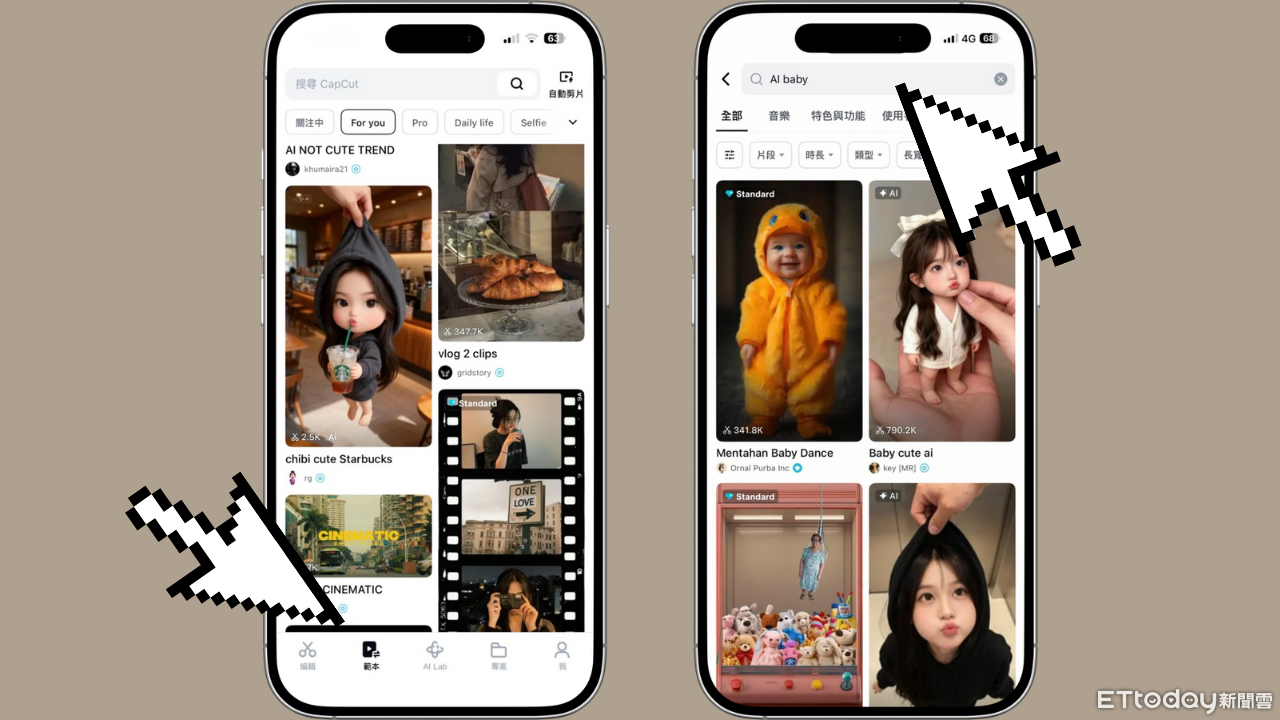 實際操作上,以剪輯 App「CapCut(剪映國際版)」為核心。使用者只要開啟 App,進入範本頁面,搜尋或選擇「AI Baby」相關模板,即可直接套用。由於範本已內建構圖、比例與特效,大幅降低手動調整的門檻。
